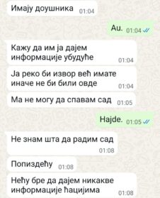 -Rekli su mi da krenem sa njima na krov zgrade da bi mi vratili telefon. Pošao sam sa njima jer nije imalo smisla da se opirem, a i nisam ništa nikome skrivio. Bilo mi je jasno da je greška u pitanju i da će u nekom trenutku shvatiti da ‘imaju pogrešnog čoveka’. Sve što imam je isto ime sa nekim studentom iz Inđije koji im je bio meta. Koliko sam shvatio, trebalo je da se na toj zgradi raširi transparent ‘Studenti pobeđuju’, a oni su to trebali da spreče. Krenuo sam bez opiranja, njih šest i ja. Odveli su me na krov i držali tamo oko pola sata, nakon toga su rekli da je hladno, da transparent neće biti raširen i da ja mogu da idem. Vratili su mi telefon i rekli da sam slobodan i da nikako ne idem u policiju. Nisam otišao u policiju, pobegao sam glavom bez obzira jer ne znam ni kako ni zašto sam se našao u toj situaciji.- kaže za IN Medija jedna od žrtava iživljavanja koji dalje navodi da je usledio I poziv u kom mu je muškarac tražio da bude “doušnik” za sve akcije studenata i Zbora u Inđiji.