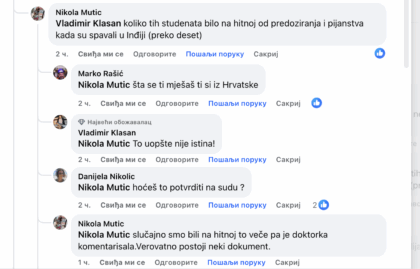 -Koliko je tih studenata bilo na hitnoj od predoziranja i pijanstva kada su spavali u Inđiji – preko deset.-napisao je Mutić.
