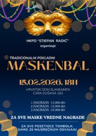 Hrvatsko kulturno-prosvjetno društvo „Stjepan Radić“ iz Novog Slankamena organizuje tradicionalni pokladni maskembal, koji će biti održan u nedelju, 15. februara, u Hrvatskom domu u Starom Slankamenu.