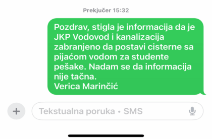Inđija: Opština zabranila postavku cisterni sa pijaćom vodom za studente pešake