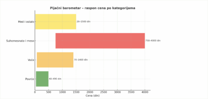 Cene suhomesnatih proizvoda i mesa variraju: domaća slanina je od 1.300 do 2.500 dinara, različite kobasice od 750 do 1.700 dinara, sveža kobasica oko 1.600, a juneće suhomesnato dostiže i do 4.000 dinara po kilogramu.