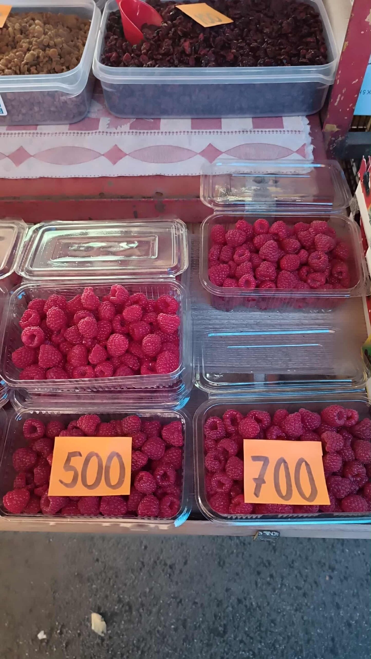 Mandarine su od 200 do 300 dinara, limun i banane po 300 dinara, dok se grožđe prodaje od 150 do 300 dinara, a maline su između 1.200 i 1.400 dinara.